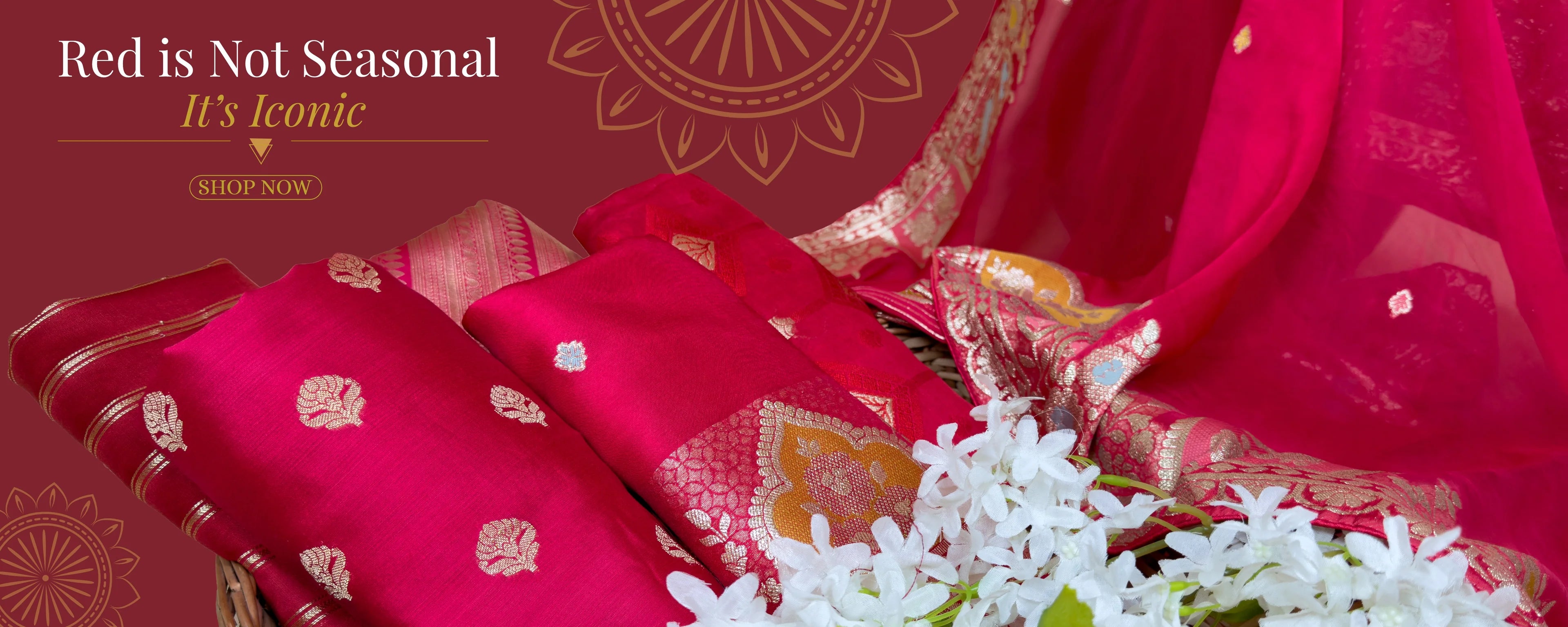 Classic Red Banarasi Georgette (Chiffon) Saree with Golden Zari Weaving